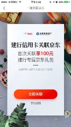 绑定龙卡信用卡,即可获得新客百元礼包!2018年6月8日至6月18日期间,持卡人通过指定入口首次在京东商城一键绑定龙卡信用卡,即可得到价值100元的京东权益大礼包。*每天限量5000名,同一持卡人仅限参与一次。100元权益大礼包包含:10元新客建行支付券1张和90元京东优惠券包(含全品类京东券1张、指定品牌优惠券3张)